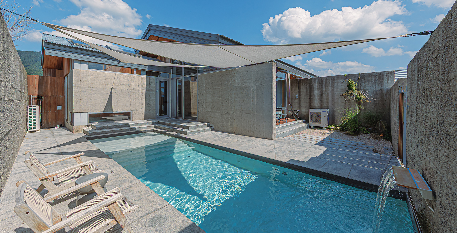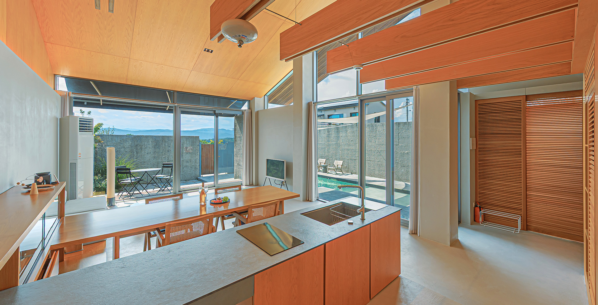 개별야외수영장, 개별자쿠지, 개별바비큐, 취사시설, 식기류, 다이닝테이블, 의자, 소파, TV, 에어컨, 블루투스스피커, 빔프로젝터, 에어드레서, 냉장고, 전기포트, 전자레인지, 냄비, 식기류, 와인잔, 조미료(오일,후추,소금), 드라이기, 어메니티(샴푸,컨디셔너,바디워시,핸드워시), 수건, 아로마오일