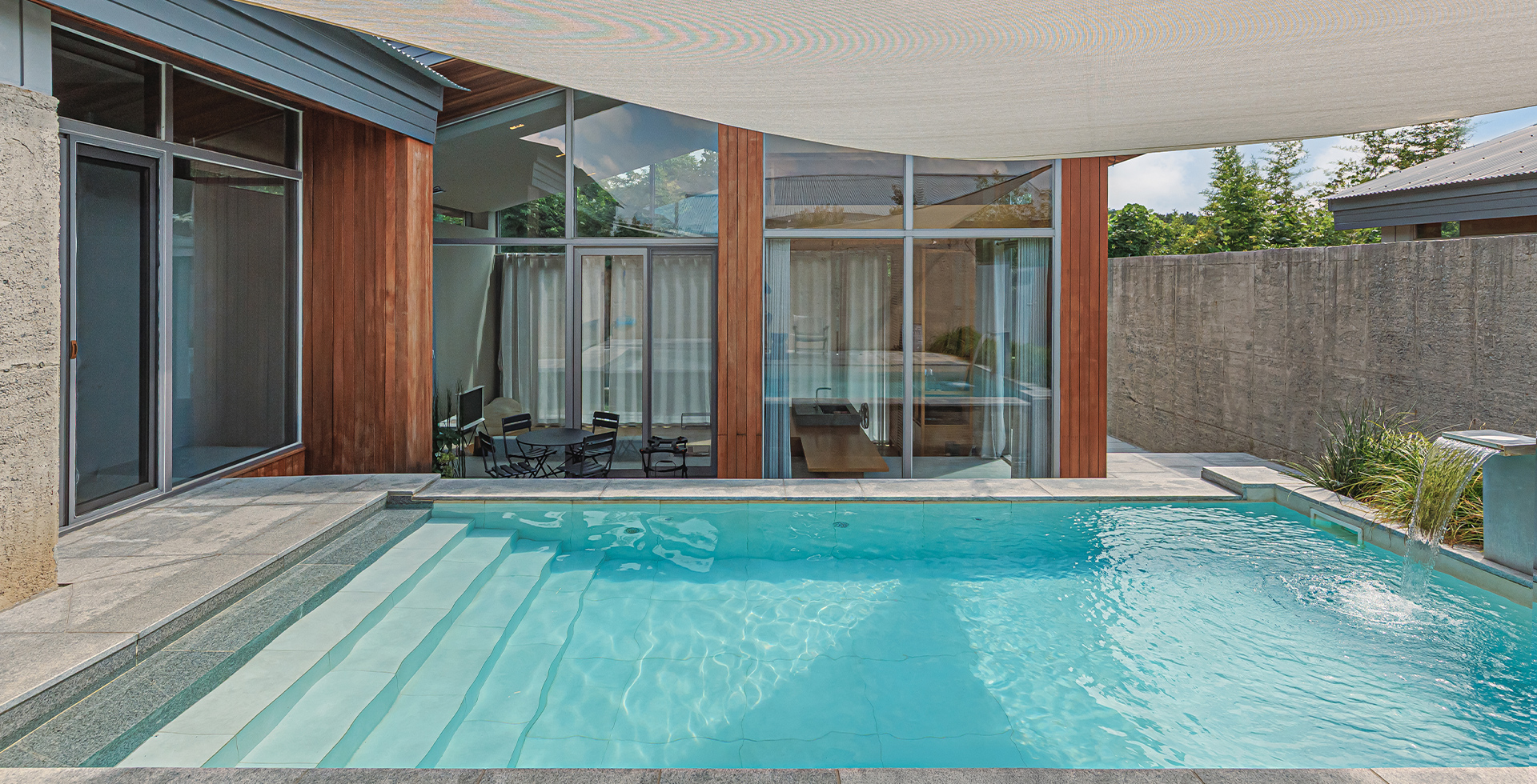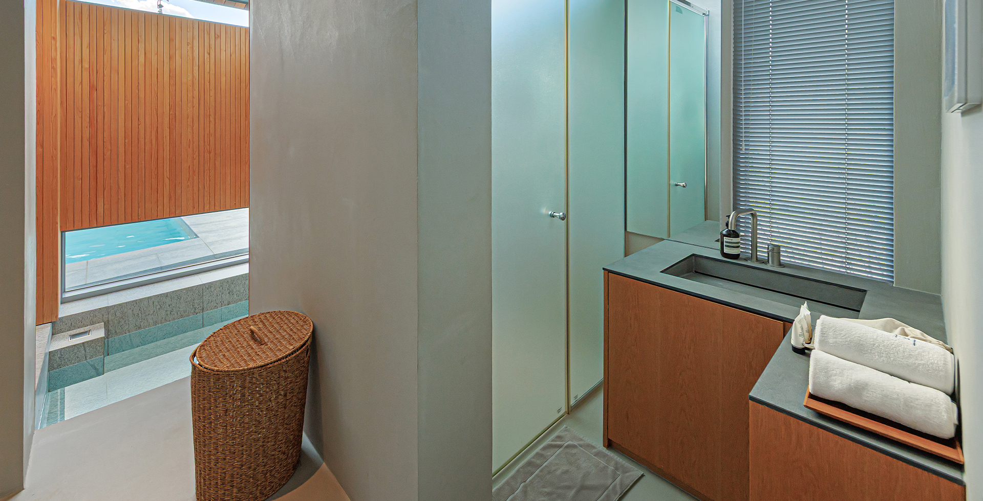 독채, 분리형 26평 / 거실 + 주방 + 침대룸 + 화장실 + 세면대 + 실내자쿠지 + 개별테라스 + 야외개별수영장