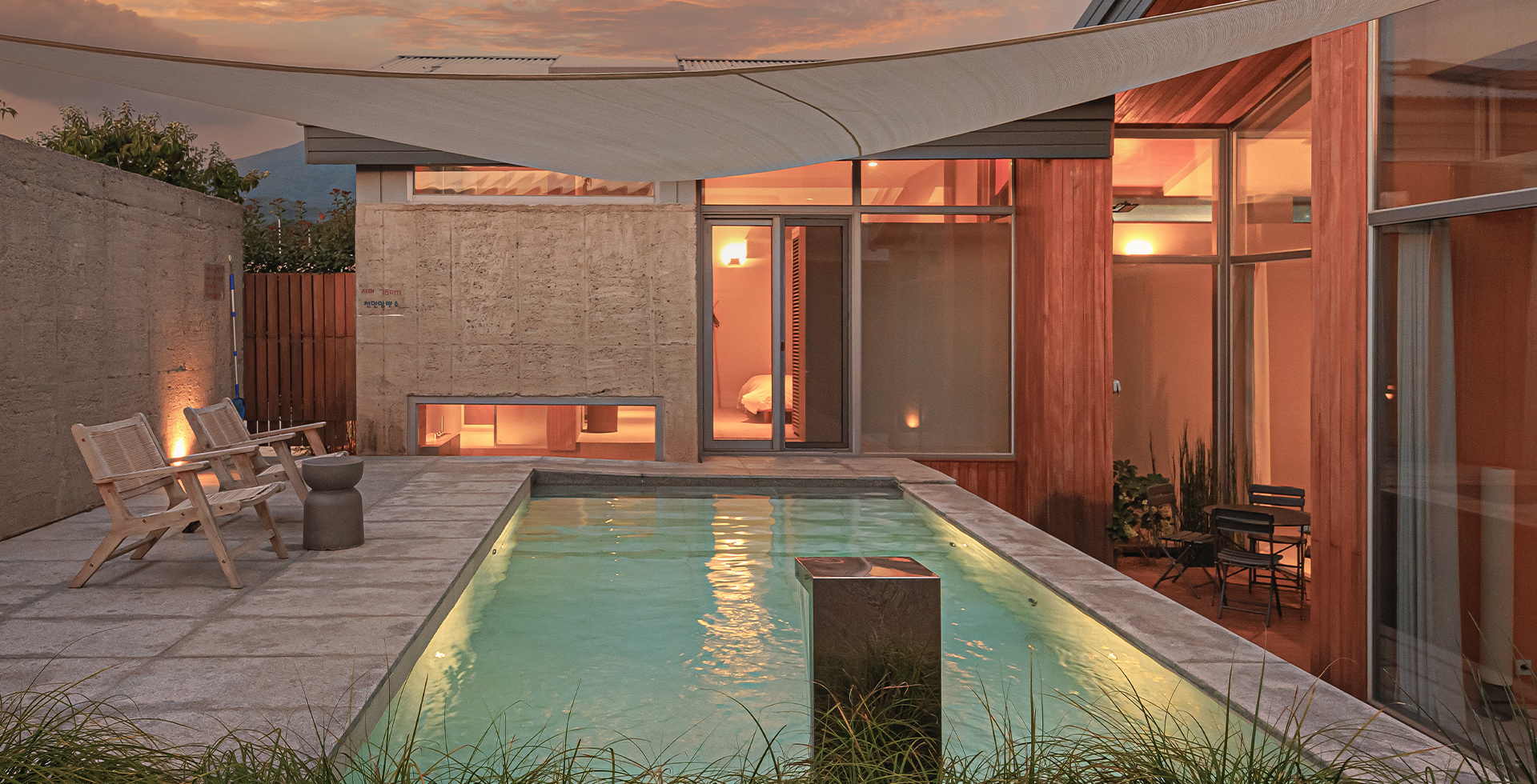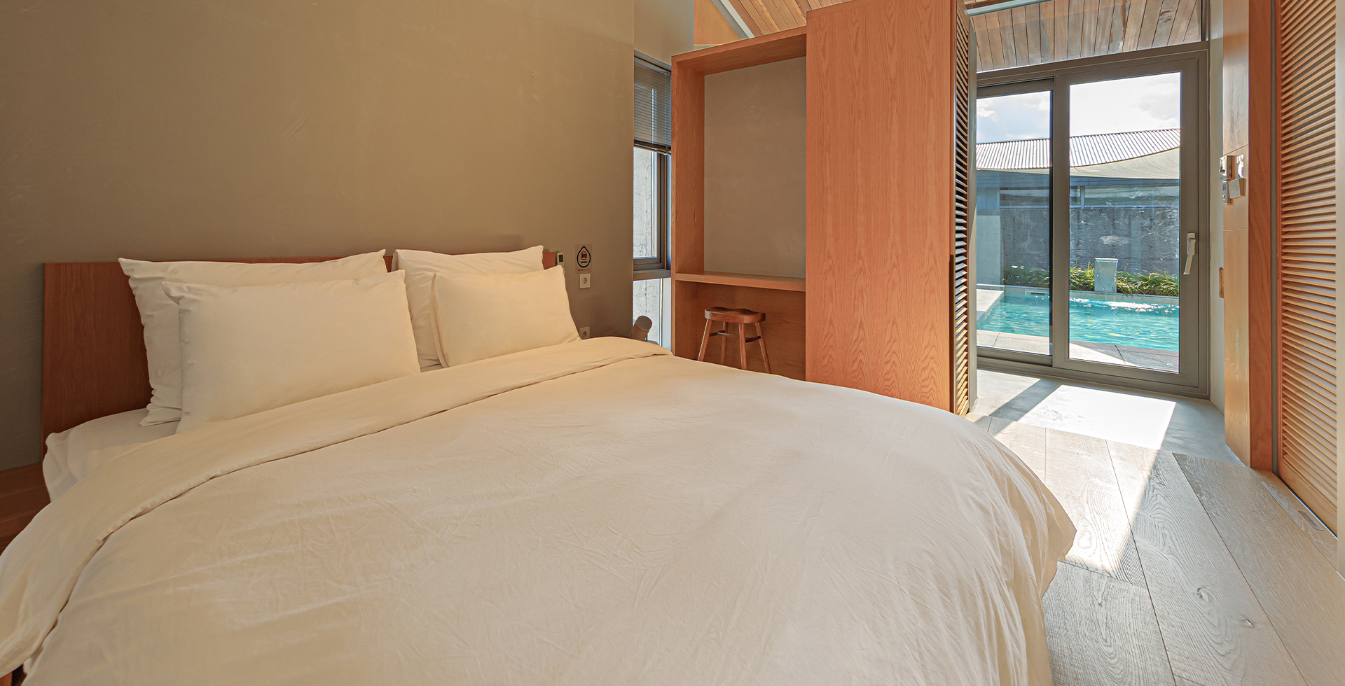 개별야외수영장, 개별자쿠지, 개별바비큐, 취사시설, 식기류, 다이닝테이블, 의자, 소파, TV, 에어컨, 블루투스스피커, 빔프로젝터, 에어드레서, 냉장고, 전기포트, 전자레인지, 냄비, 식기류, 와인잔, 조미료(오일,후추,소금), 드라이기, 어메니티(샴푸,컨디셔너,바디워시,핸드워시), 수건, 아로마오일