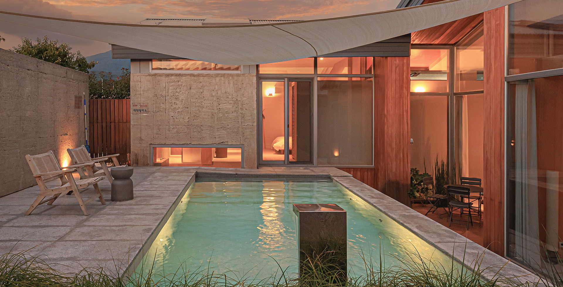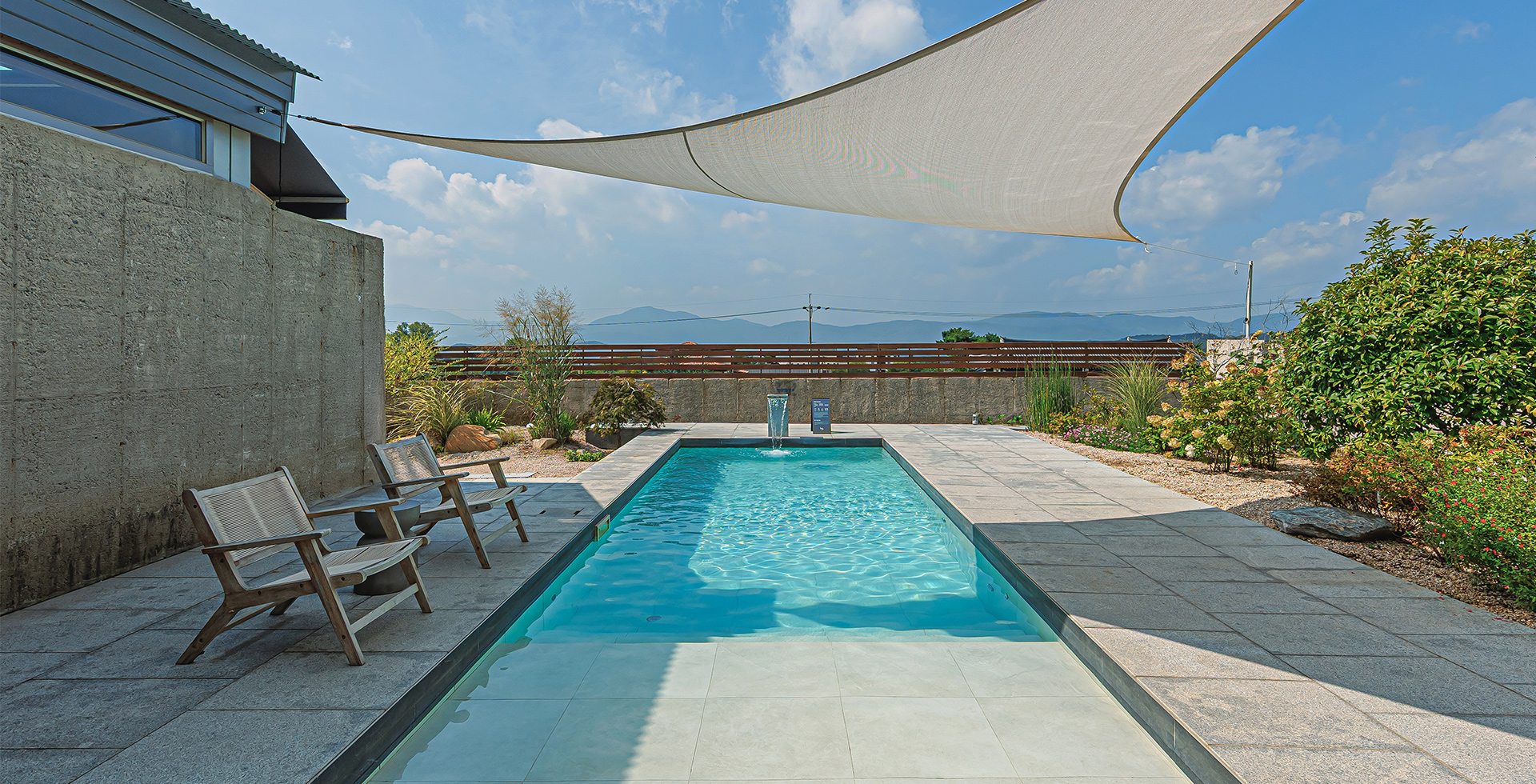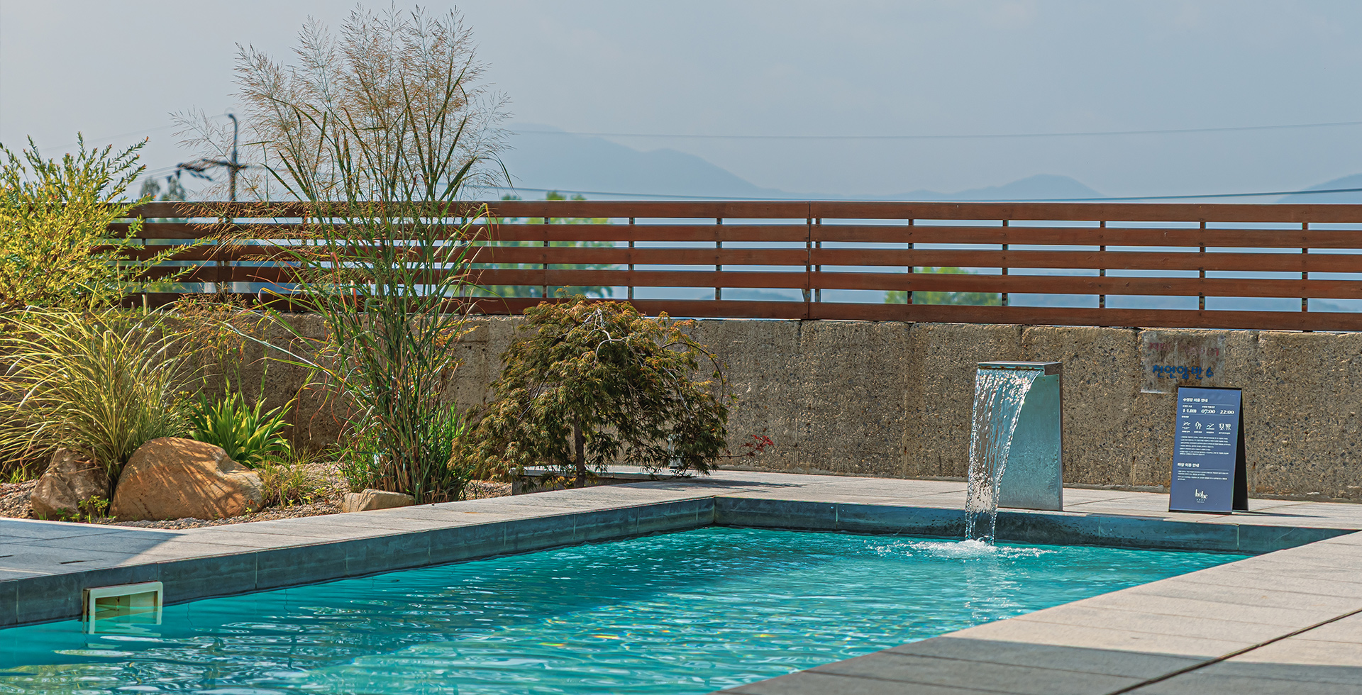 " 풍경을 가장 고요하게 담아내는 온도의 수영장. " 외부의 시선은 멀어지고, 나만의 온도만 남는 호헤의 개별풀 여기서의 수영은 '움직임' 이 아니라 '휴식'이 됩니다.